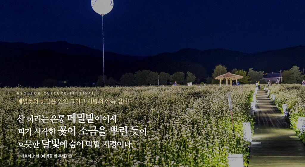 국내 문학축제 중에서 대표적으로 성공한 축제인 평창효석문화제가 2025년 9월 5일부터 14일까지 평창군 봉평면 일원에서 개최합니다.