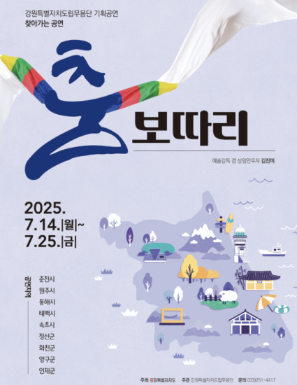 강원특별자치도립무용단은 도내 문화소외계층을 위한 찾아가는 무용공연 ‘춤보따리’를 오는 7월 14일부터 25일까지 개최한다고 밝혔다.