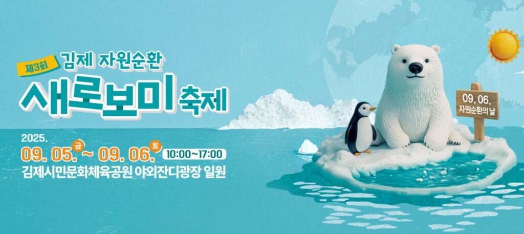 환경을 지키고, 소중한 자원을 되살리는 뜻깊은 시간을 가지며 어린아이부터 어른까지 3대(代)가 즐길 수 있는 환경축제인 제3회 김제 자원순환 새로보미 축제가 2025년 9월 5일부터 6일까지 김제시민문화체육공원 잔디광장 일원에서 개최합니다.