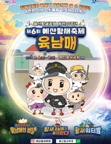 ‘황새 육남매’라는 주제로 예산황새축제가 2025년 9월 6일부터 7일까지 예산황새공원 일원에서 개최합니다.