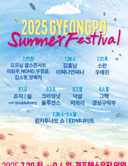 신나는 공연과 함께 재미있는 체험 이벤트가 펼쳐지는 경포 썸머 페스티벌이 2025년 7월 29일부터 8월 4일까지 개최합니다.