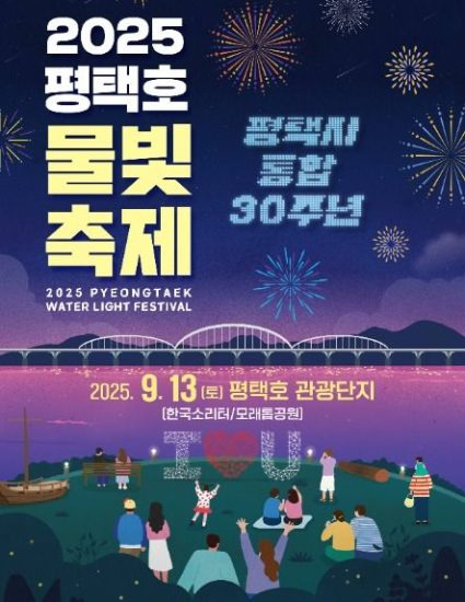 물과 빛을 주제로 물놀이 프로그램, 상설 공연, 체험 등 다양한 행사가 펼쳐지는 평택호 물빛축제가 2025년 9월 13일 개최합니다.
