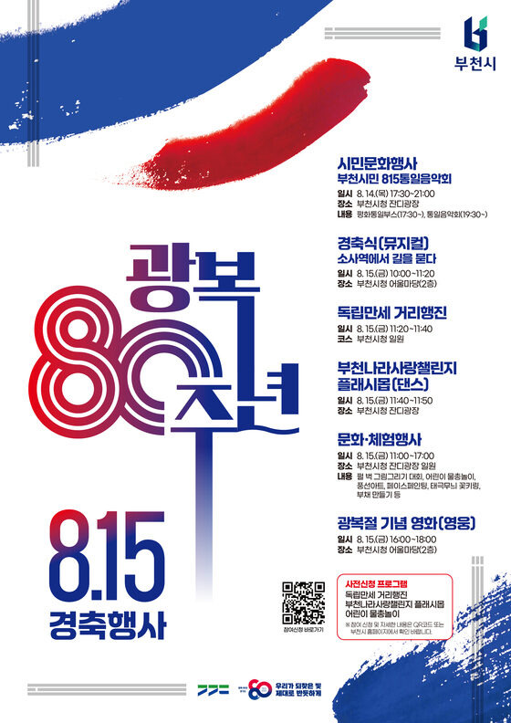 조용익 부천시장은 “경축식은 단순한 축하나 의전에 그치지 않고, 국가의 역사와 시민의 정신을 함께 기리는 시간이어야 한다”며 “광복 80주년을 맞은 올해, 부천이 기억하는 항일의 역사를 무대 위에 되살리고, 시민 모두가 그 의미를 보고 듣고 공감하는 시간이 되길 바란다”고 말했다.