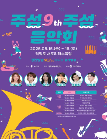이번 음악회는 단순한 공연을 넘어, 자연과 사람 그리고 문화가 어우러지는 ‘삶의 쉼표’ 같은 축제로 기획됐다. 첫날인 8월 15일에는 서포리 해변 노래방과 주민 동아리 한마당, 8월 16일에는 경인방송 라디오 특집 공개방송이 펼쳐질 예정이다.