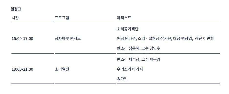 정자마루 콘서트(15:00-17:00) – 소리꽃가객단, 해금 원나경, 소리, 철현금 장서윤, 대금 변상엽, 장단 이민형, 판소리 정은혜, 고수 김인수
