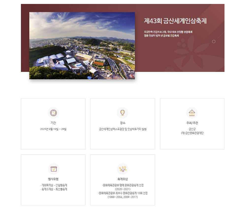 -충남 금산에서 2025년 9월 19일부터 28일까지 10일간 금산세계인삼축제가 개최-