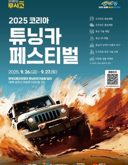 자동차 튜닝의 다채로운 매력을 한껏 느낄 수 있는 대규모 축제인 「2025 코리아 튜닝카 페스티벌」이 오는 9월 26일(금)부터 27일(토)까지 양일간, 김천시 어모면 소재 ‘튜닝안전기술원’일원(다남2길 25)에서 개최된다.