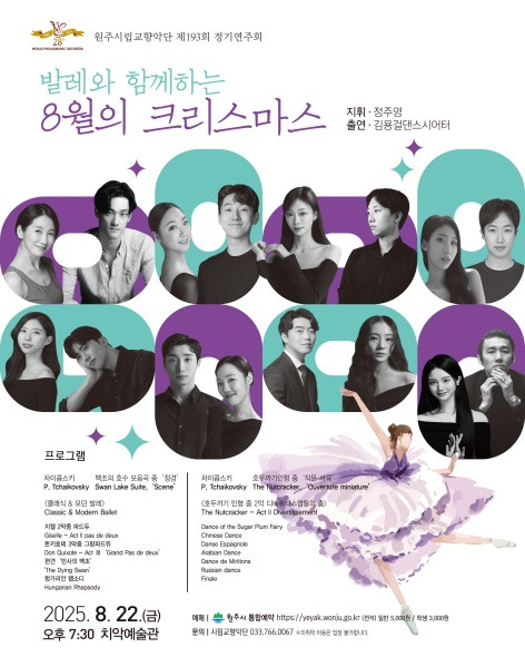원주시립교향악단(상임지휘자 정주영)은 오는 22일(금) 오후 7시 30분 치악예술관에서 제193회 정기연주회 ‘발레와 함께하는 8월의 크리스마스’를 개최한다.