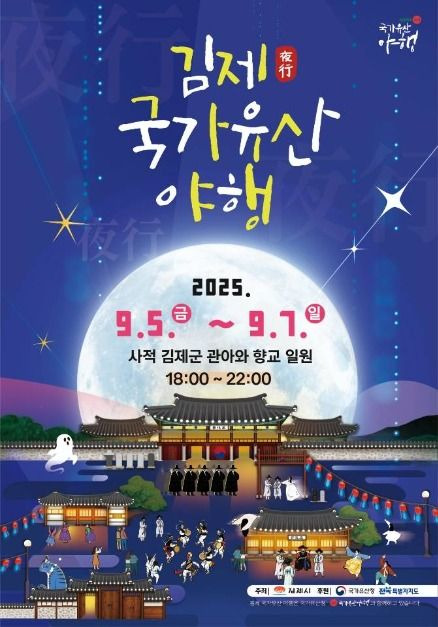 김제시는 2025년 9월 5일부터 오는 7일까지 2일간 사적 김제군 관아와 향교 일원에서 2025년 김제 국가유산 야행을 개최한다고 밝혔다.
