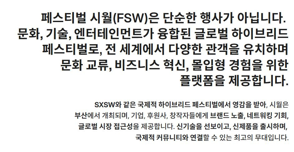 새로운 혁신의 물결을 주도하는 기술과 엔터테인먼트가 결합한 국제적 플랫폼인 페스티벌 시월 축제가 2025년 9월 21일부터 10월 3일까지 부산 벡스코에서 개최합니다.