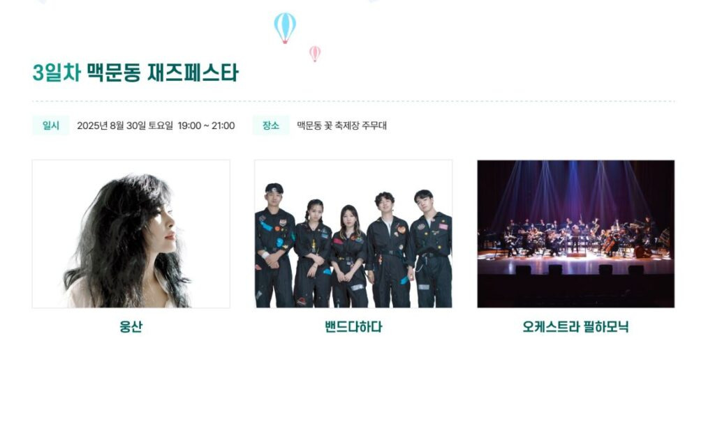 축제와 공연 세부내용과 일정은 축제주관기관으로 문의하여 주시길 바랍니다.
