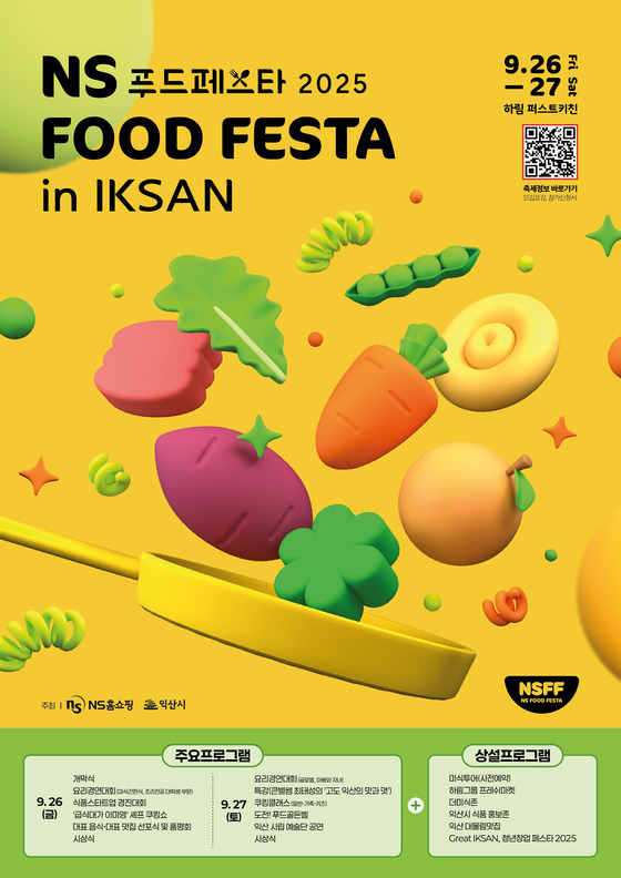 NS 푸드페스타는 익산시와 NS홈쇼핑이 공동 주최하며, 오는 9월 26일부터 27일까지 하림 퍼스트키친에서 열린다. 축제의 대표 프로그램인 요리경연대회는 △미식 간편식 △조리 전공 대학생 △아빠와 자녀 △글로벌 라면 등으로 나눠 본선이 진행된다.