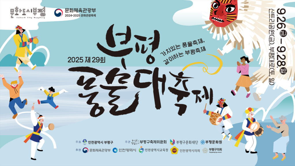 유구한 세월을 거치면서 우리 민족의 정서와 심성을 가장 잘 표현한 민속 예술이자 가장 한국적인 문화인 풍물을 잘 나타내는 부평풍물대축제가 2025년 9월 26일부터 28일까지 부평대로 일원에서 개최합니다.