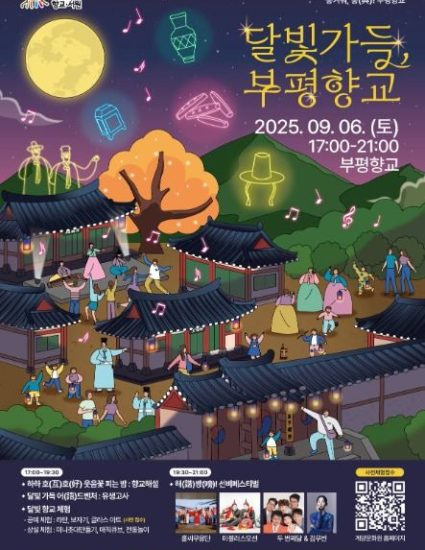 병자호란이 끝난 후 새롭게 재건된 향교 속에서 다시 새롭게 맞이 하는 삶을 축하하는 선비들의 잔치가 펼쳐지는 달빛가득 부평향교 축제가 2025년 9월 6일에 개최합니다.