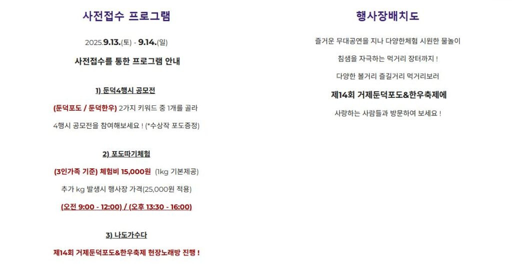 행사장소 : 경상남도 거제시 둔덕면 / 둔덕가족생활체육공원 일원