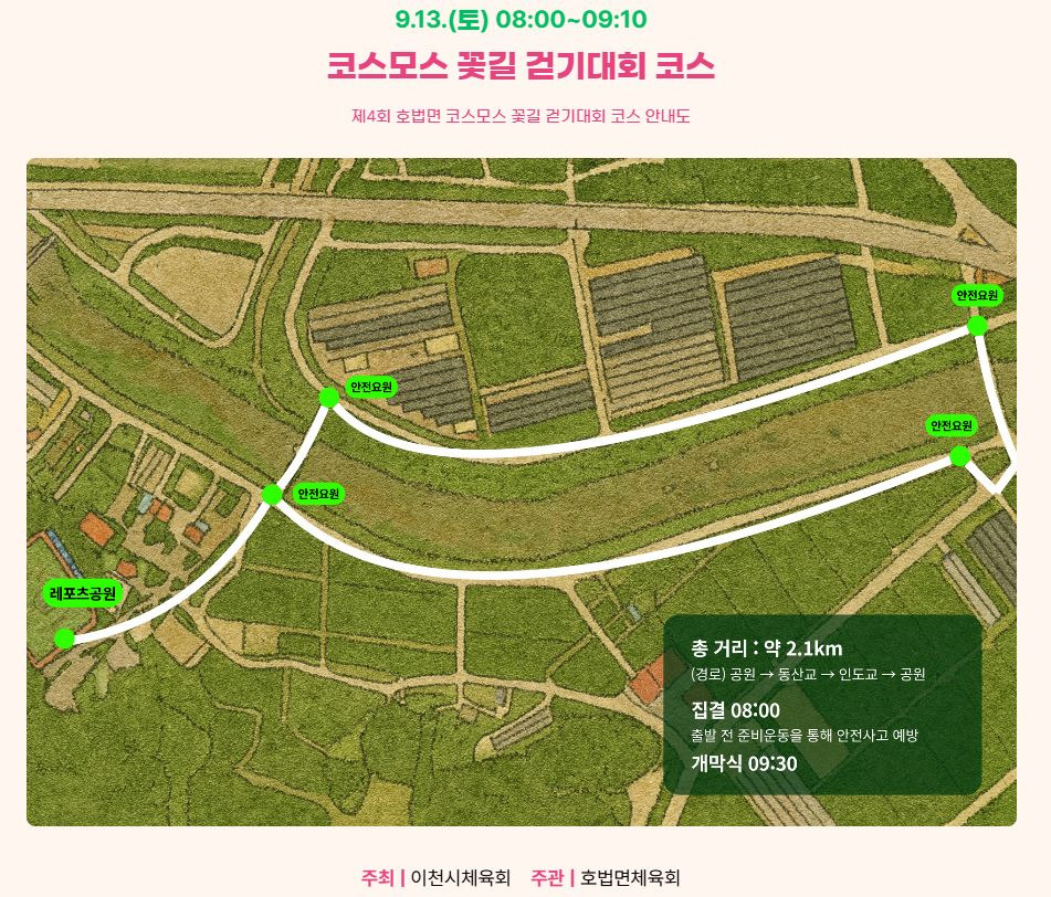 메인프로그램 : 호법 코스모스 꽃길 걷기대회, 호호호 플라워킹 스탬프투어