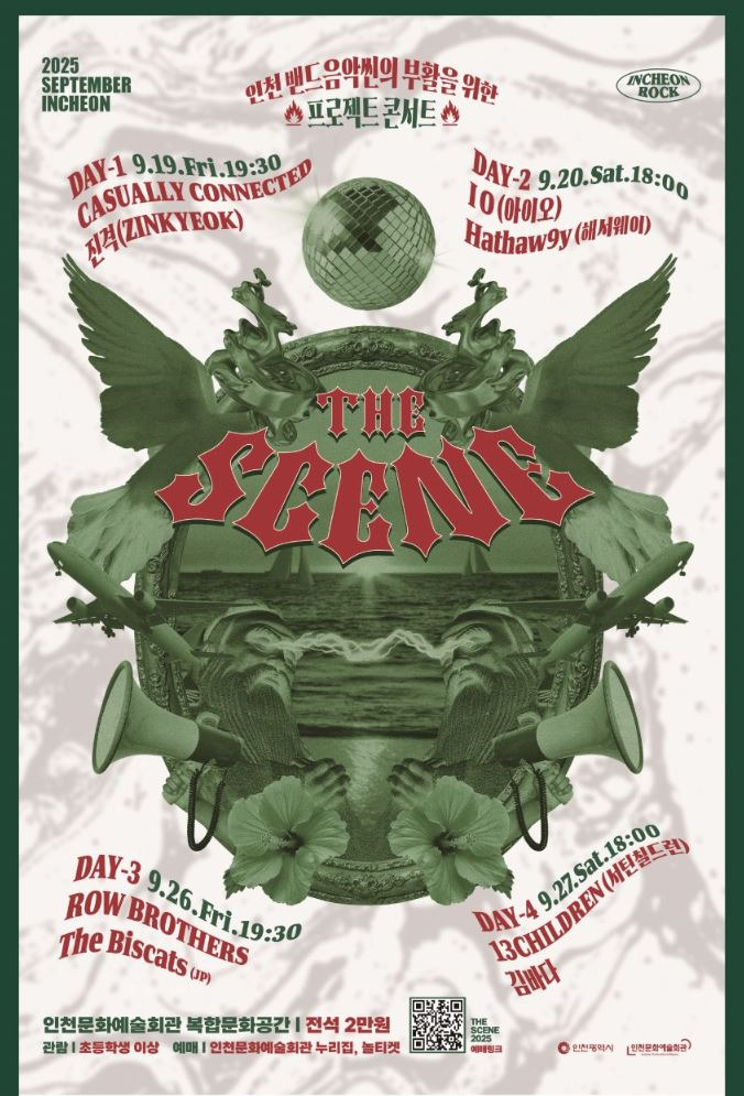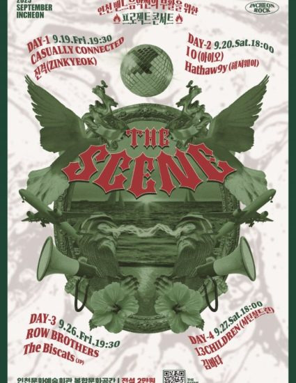 인천 밴드음악의 부활을 기원하는 프로젝트 콘서트 ‘THE SCENE 2025’가 오는 9월 인천문화예술회관에서 열린다. 이번 공연은 인천을 비롯해 서울, 부산, 도쿄 등 4개 도시 밴드들이 참여해 각 지역 밴드 ‘음악 씬(Scene)’의 현재를 조명하고, 교류와 확장을 도모하는 자리다.