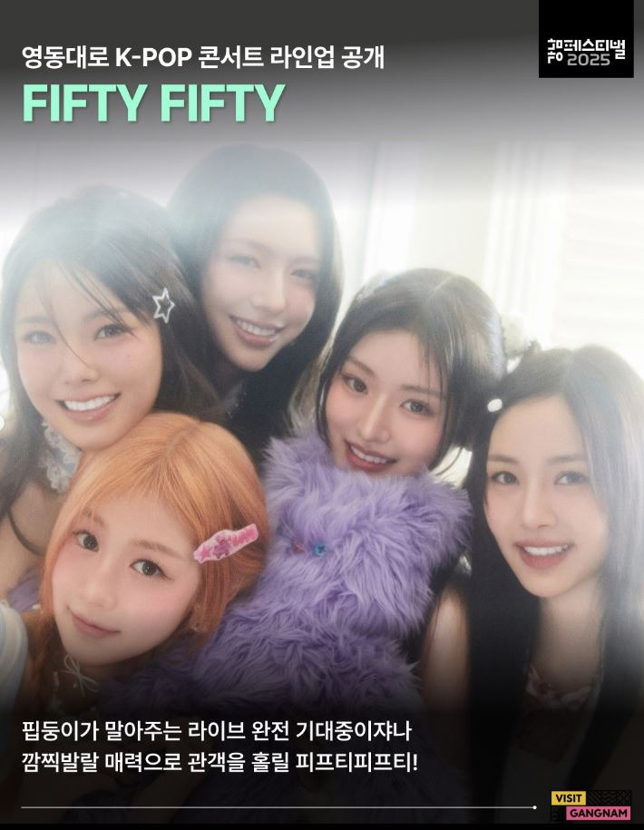 올해의 영동대로 K-POP 콘서트는 규모와 열기를 더욱 키워 팬들에게 다가간다. god, 비투비, SF9, 피프티피프티, 엔싸인, 베이비돈크라이 등 K-POP 아티스트들이 무대를 빛낸다. 감각적인 무대와 몰입도 높은 연출이 어우러져 관객들에게 잊지 못할 감동을 선사하며, 한류의 중심지 강남의 브랜드 가치를 한층 더 빛낼 것이다.
