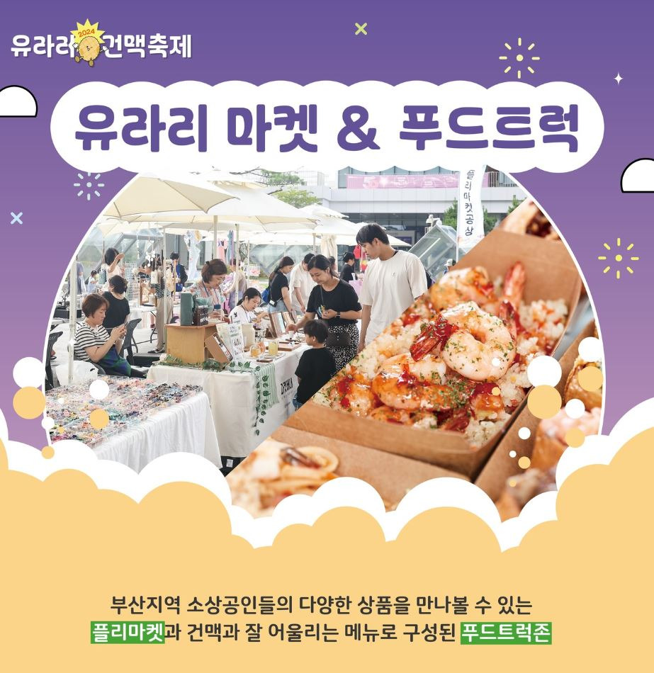 모두가 즐길 수 있는 공연과 이벤트, 푸드트럭 등 다채로운 프로그램들이 준비되어 있어 9월 12일 ~ 9월 13일까지 유라리광장으로 와서 건어물과 시원한 부산 수제맥주의 맛을 느낄 수 있습니다.