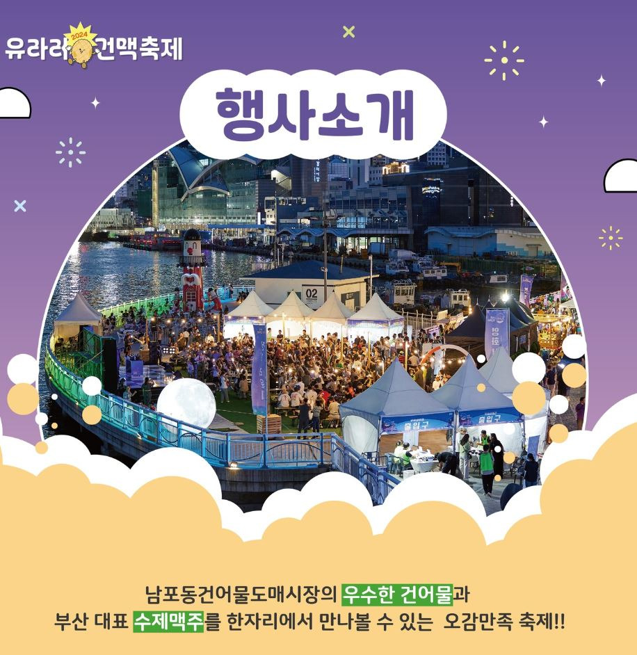 부산의 가장 아름다운 여름밤에 건어물과 맥주의 완벽한 조합이 펼쳐지는 2025 유라리건맥축제가 2025년 9월 12일부터 13일까지 개최합니다.