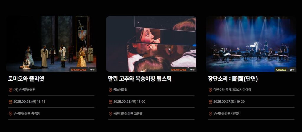 – 장소 : 부산문화회관, 부산시민회관, 해운대문화회관