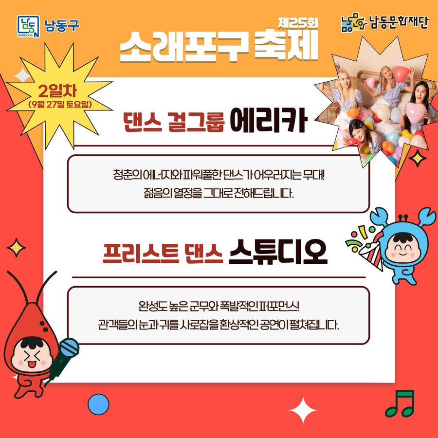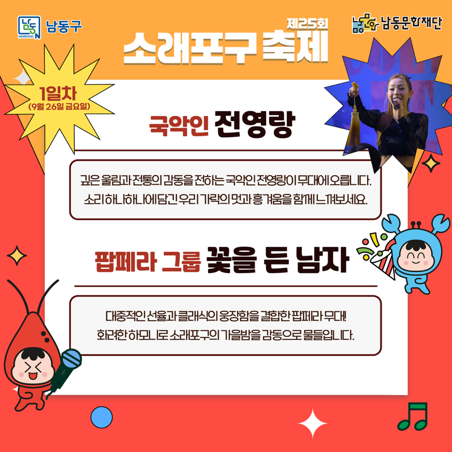 소래포구 영상제, 가족 대상 공연, 서해안 풍어제, 소래 창작 공연, 바다 드론쇼 등의 무대가 준비되어 있습니다.