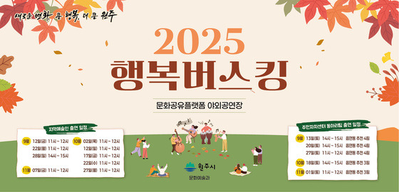 원주시는 오는 12일부터 2025년 하반기 ‘가을 행복버스킹’을 본격추진한다.