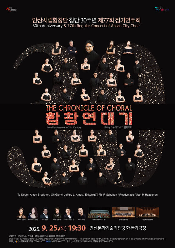 이민근 안산시장은 “30년 동안 안산시립합창단은 시민과 함께 호흡하며 시의 문화적 품격을 높여왔다”라며 “이번 기념 연주회가 지난 역사를 돌아보고 앞으로의 새로운 30년을 향해 나아가는 뜻깊은 무대가 되길 기대한다”고 말했다.