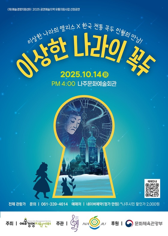 16일 나주시(시장 윤병태)에 따르면 오는 10월 14일 전통과 현대가 어우러진 종합예술극 ‘이상한 나라의 꼭두’ 기획공연을 통해 시민들에게 다채로운 문화 향유 기회를 제공한다.