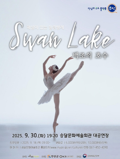전남 무안군은 오는 9월 30일 화요일 오후 7시 20분, 승달문화예술회관 대공연장에서 ‘해설이 있는 힐링발레 '백조의 호수'’를 선보인다.