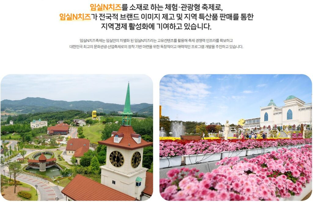 지역경제 활성화와 치즈산업 발전을 위하여 매년 10월 초 임실치즈테마파크에서 임실군민과 방문객들이 함께 즐기는 대한민국 대표 문화관광축제로 거듭 발전해 나가는 임실N치즈축제다.
