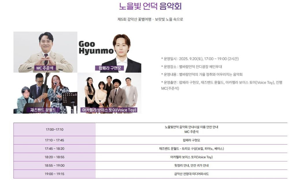 공연프로그램 : 노을빛언덕음악회, 버스킹, 지역예술인 단체 공연
