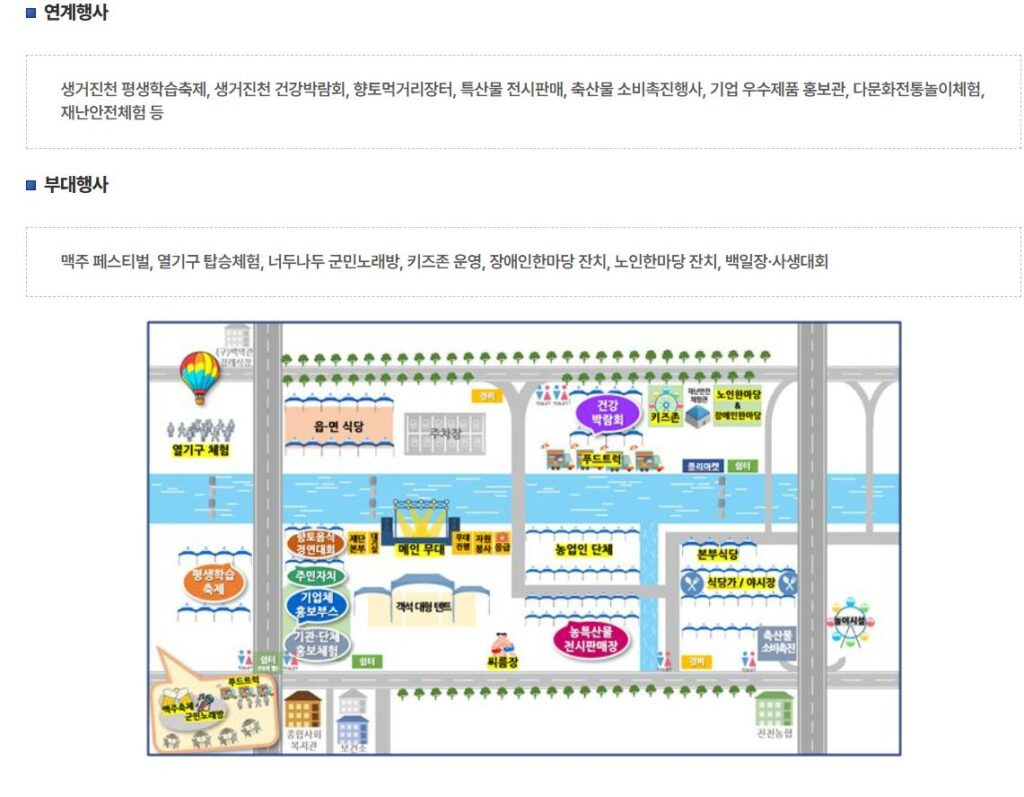 행사장소 : 진천군 진천읍 백곡천 둔치 일원(충청북도 진천군 진천읍 읍내리 165)