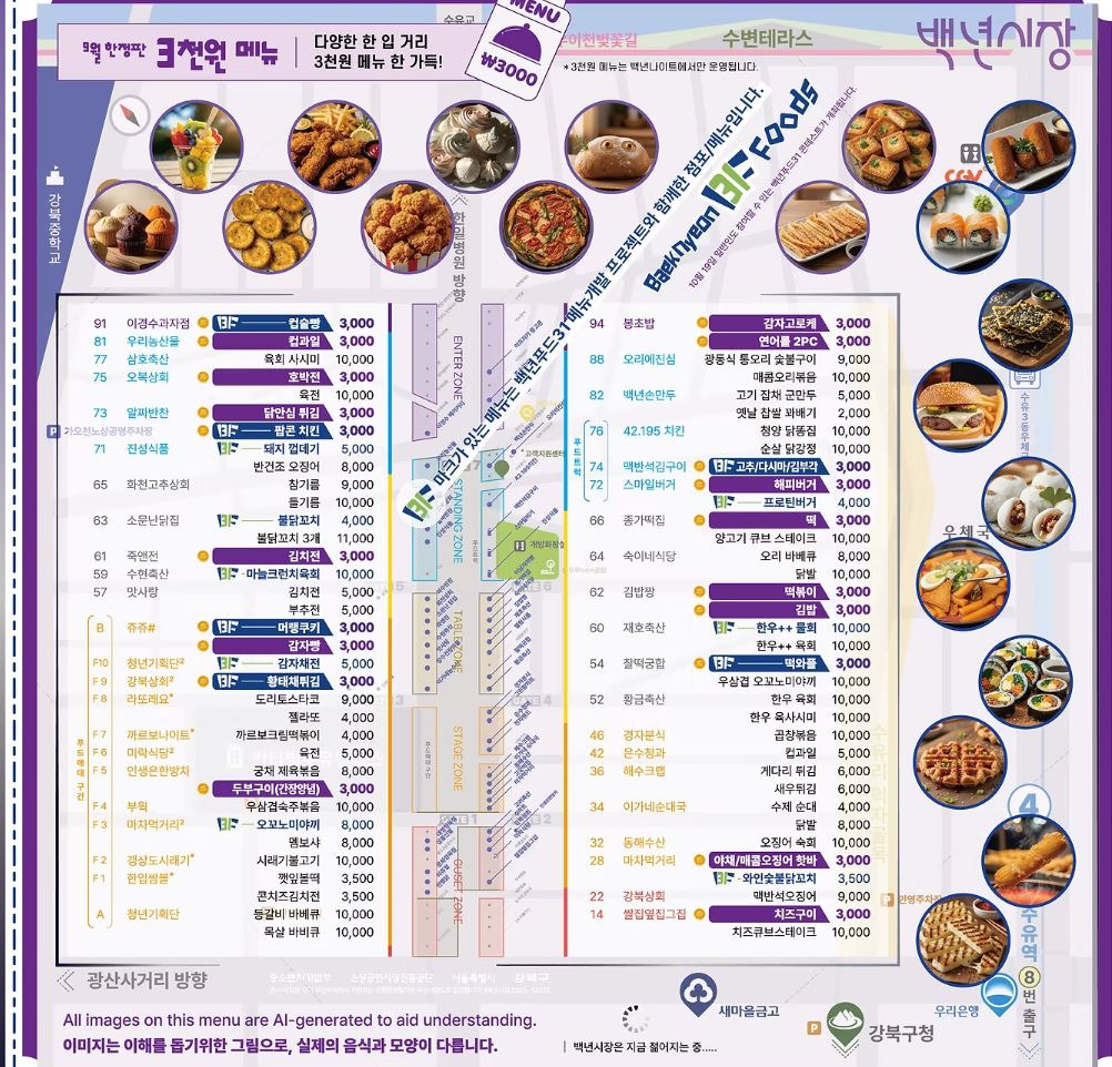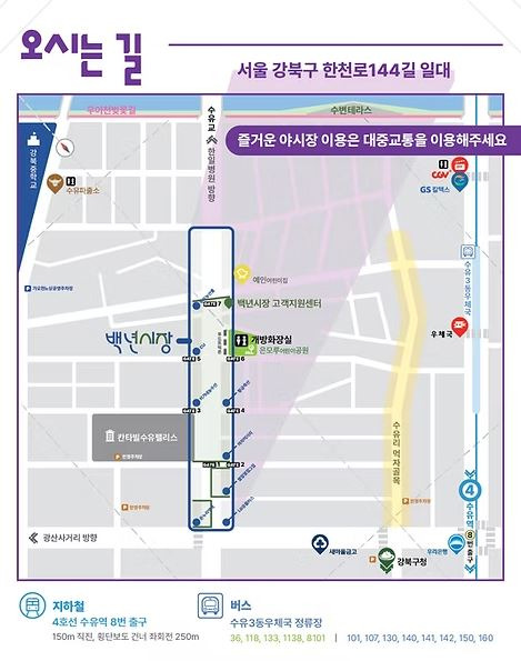 다양한 이벤트가 준비되어 있어 친구, 가족, 연인과 함께 즐길 수 있다. 낮에는 오랜 역사의 전통시장, 밤에는 즐길 거리 가득한 나이트 마켓으로 변하는 백년시장초대형 미러볼과 네온사인, 미니DJ부스가 있어 남녀노소 누구나 즐길 수 있는 레트로 테마의 야시장입니다.