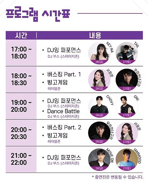 부대프로그램 : 음악 · 댄스·마술·버스킹 공연