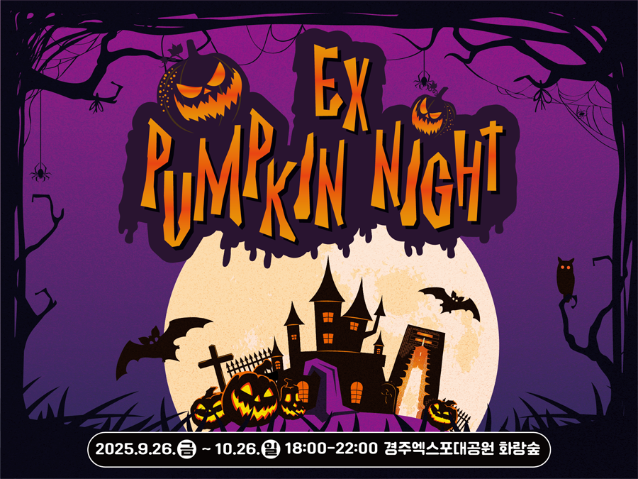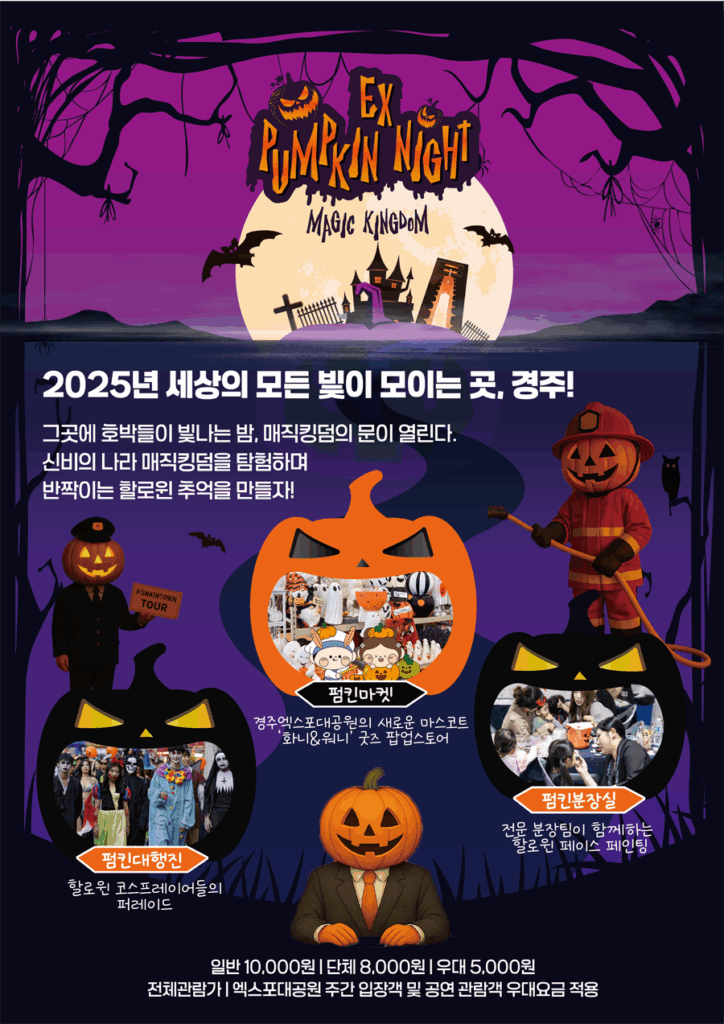 온 세상이 호박으로 이루어진 신비한 나라 매직킹덤을 탐험하는 콘셉트로 펼쳐지는 2025 EX 펌킨나잇 매직킹덤 페스티벌이 2025년 9월 26일부터 10월 26일까지 경주엑스포대공원에서 개최합니다.
