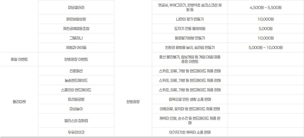 – 약령시 : 제천 약령시의 전통을 현대적으로 재해석한 공간에서 약초 전시와 특산품 판매
