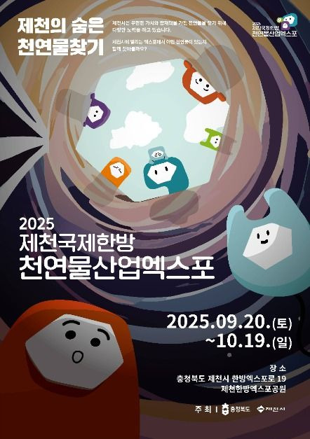 ‘천연물과 함께하는 세계, 더 나은 미래를 만나다’를 주제로 열리는 국제 행사 2025 제천국제한방천연물산업엑스포가 2025년 9월 20일부터 10월 19일까지 제천 한방 엑스포 공원에서 개최합니다.