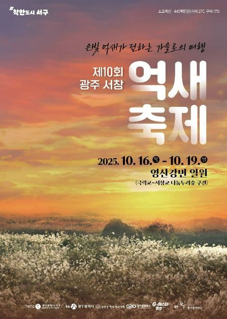 은빛 억새가 전하는 가을로의 초대라는 주제로 제10회 광주서창억새축제가 2025년 10월 16일부터 19일까지 영산강변에서 개최합니다.