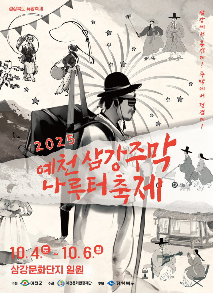 대한민국의 마지막 주막인 삼강주막을 배경으로 고향을 오가는 귀향객들의 쉼터가 되는 예천 삼강주막 나루터 축제가 2025년 10월 4일부터 6일까지 예천 삼강문화단지 일원에서 개최합니다.