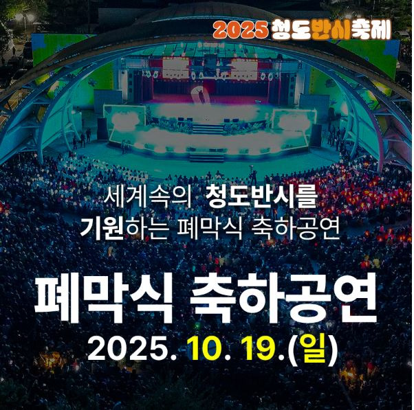 ‘청도 Fun(반) See(시) 축제’이라는 주제로 10월 17일 금요일부터 10월 19일 일요일까지 청도야외공연장 일원에서 열립니다.