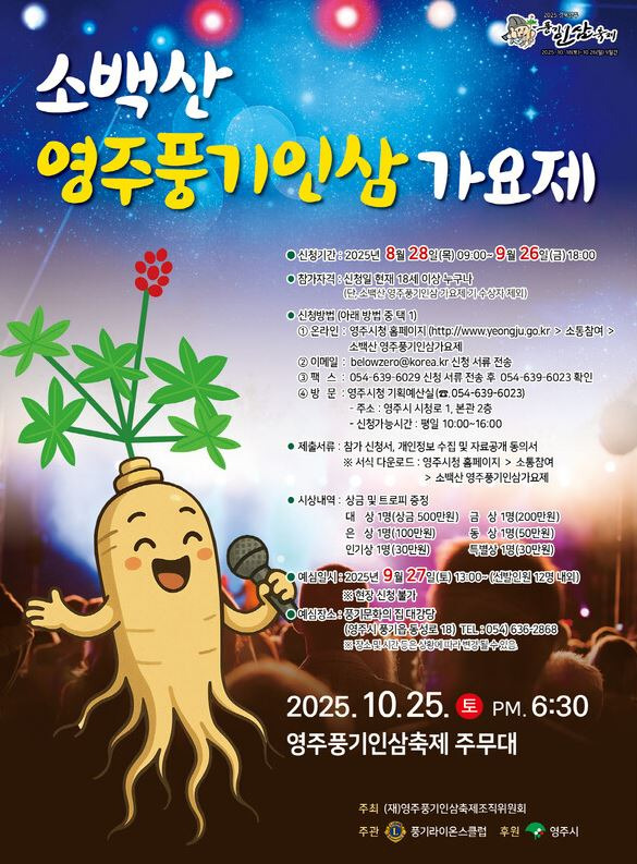 -풍기인삼축제가 2025년 10월 18일부터 26일까지 9일간 영주시 풍기인삼문화팝업공원 및 남대천 일원에서 개최