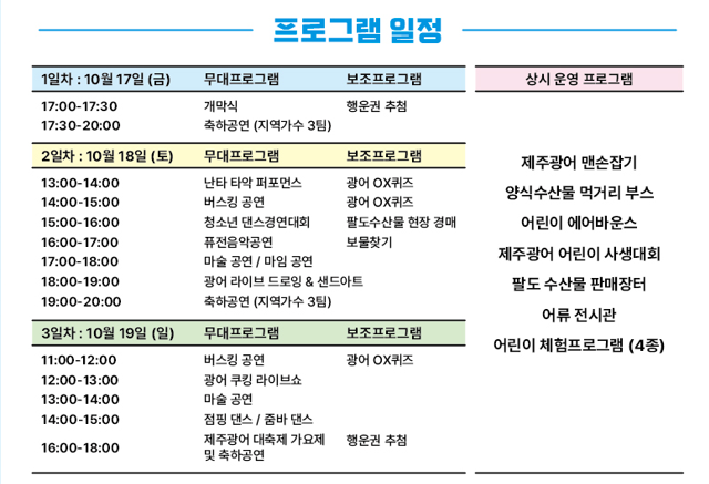 축제와 공연 세부내용과 일정은 축제주관기관으로 문의하여 주시길 바랍니다.