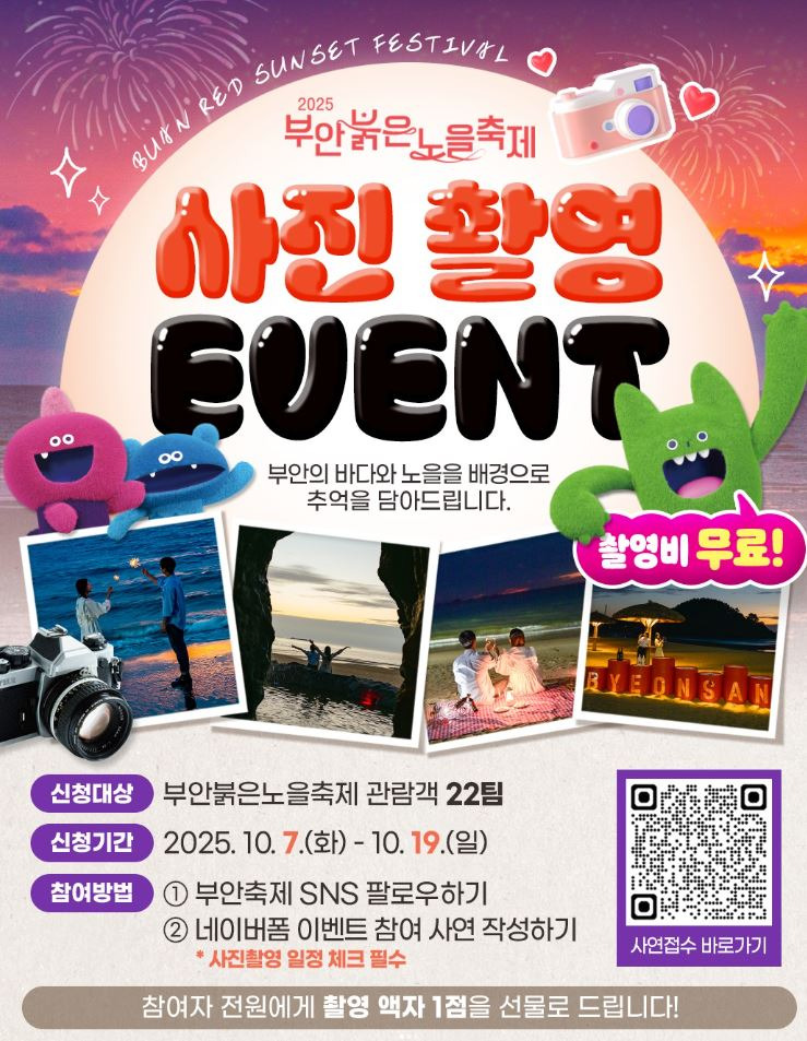 서해에서 노을이 아름답기로 유명한 부안군 변산해수욕장에서 진행되는 부안붉은노을축제가 2025년 10월 24일부터 26일까지 개최합니다.
