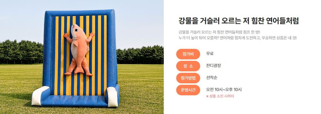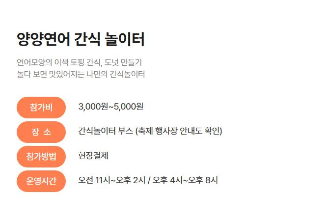 연어맨손잡기(30,000원), 간식놀이터(3,000원) 등 일부 유료 프로그램