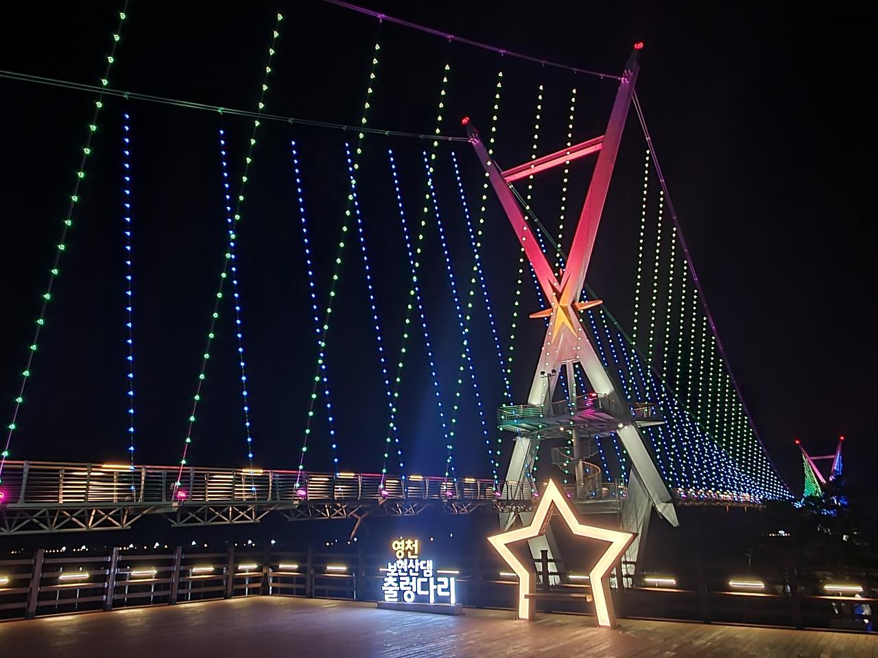 특히, 추석 연휴와 보현산별빛축제 기간(10월 17~18일)에는 출렁다리를 야간 개방해 은은한 조명 아래서 걷는 특별한 경험을 제공하고, 가족, 연인, 친구와 방문한 관광객들에게 잊지 못할 추억을 선사할 것으로 기대된다.