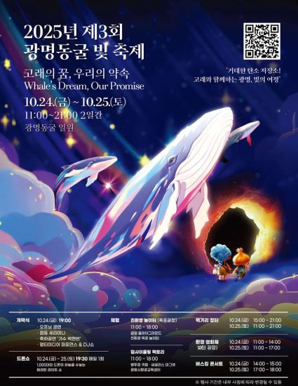 고래의 꿈, 우리의 약속 (Whale’s Dream, Our Promise) 신비로운 빛의 향연을 주제로 광명동굴 빛 축제가 진행합니다.