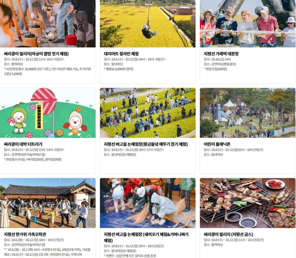 지평선을 무대로 개최되는 대통령배 전국 농악경연대회를 비롯한 다양한 볼거리와 아궁이 쌀밥 짓기, 메뚜기 잡기, 벼 베기 체험 등 각종 농경문화체험프로그램이 펼쳐집니다.