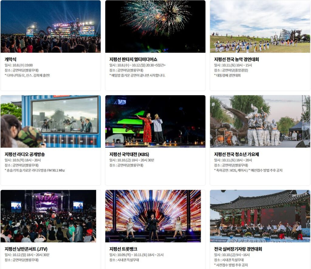 축제와 공연 세부내용과 일정은 축제주관기관으로 문의하여 주시길 바랍니다.