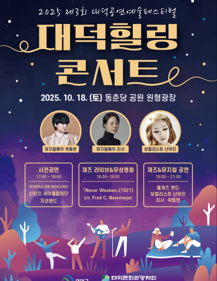 대전 대덕구가 오는 13일 동춘당공원에서 ‘대덕힐링콘서트-제3회 대덕예술난장축제’를 개최한다.